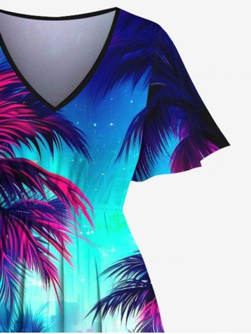 Galaxy Coconut Tree Print Plus Size Matching Hawaii Beach Outfit For Couples - Azul - Azul