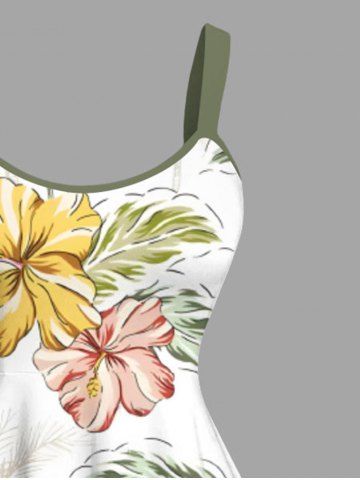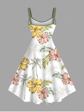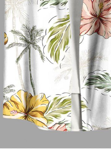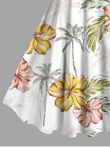 Hibiscus Flower Leaf Coconut Tree Tropical Print Plus Size Matching Hawaii Beach Outfit For Couples - Blanco - Blanco