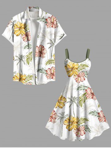 Trajes Hawaianos A Juego > Hibiscus Flower Leaf Coconut Tree Tropical Print Plus Size Matching Hawaii Beach Outfit For Couples