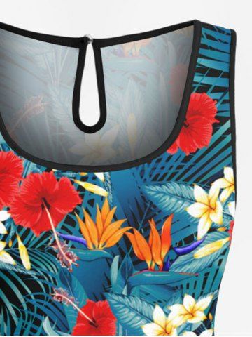Matching Hawaii Shirt and Romper Plus Size Beach Outfit Tropical Leaf Hibiscus Printed for Couples - Verde Oscuro