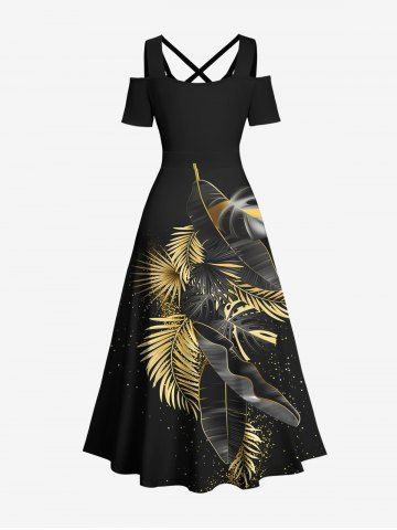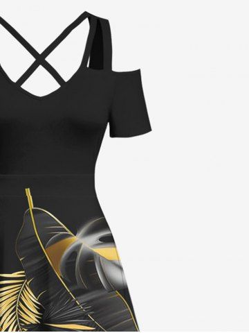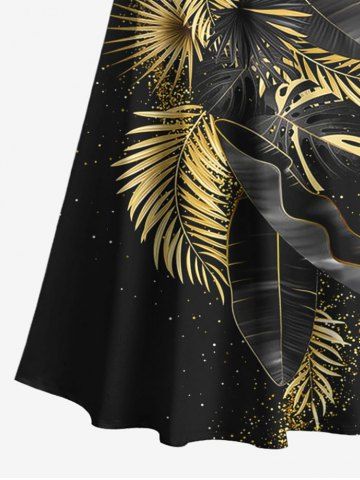 Metallic Tropical Leaf Print Plus Size Matching Hawaii Beach Outfit For Couples - Negro - Negro