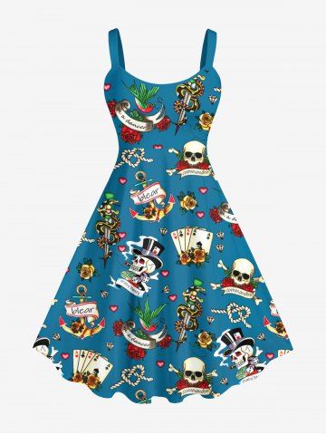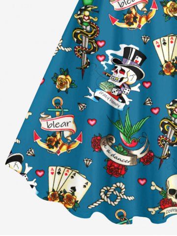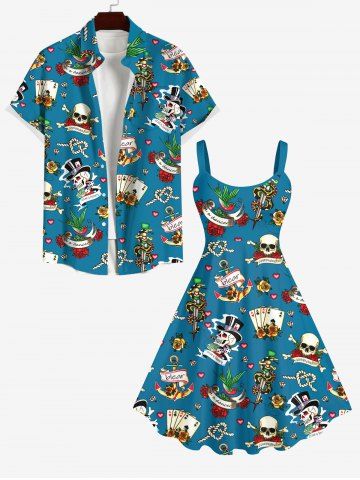 R*****r4Skulls Poker Rose Flower Heart Sword Snake Anchor Print Plus Size Matching Hawaii Beach Outfit For CouplesColor: DEEP GREENWe loved the pattern and they look great on. The straps on the dress are a little long but easy to fix.