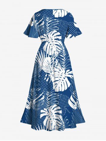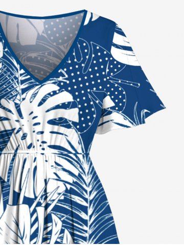 Tropical Leaf Dots Print Plus Size Matching Hawaii Beach Outfit For Couples - Azul - Azul