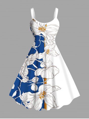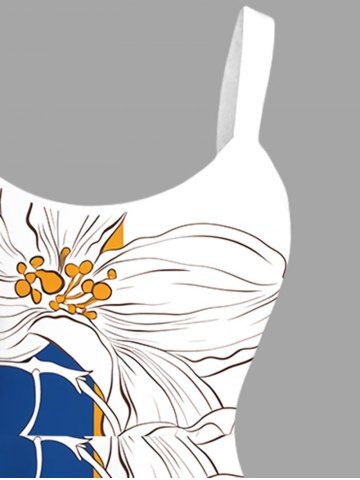 Tropical Leaf Flowers Colorblock Print Plus Size Matching Hawaii Beach Outfit For Couples - Azul - Azul
