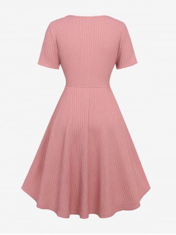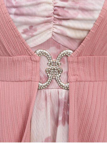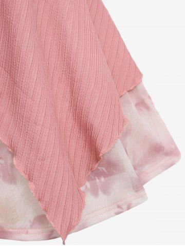 Plus Size Floral Print Mesh Ruffles Ruched Buckle Ribbed Textured Asymmetrical 2 In 1 Dress - Rosa Claro - Rosa Luz