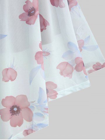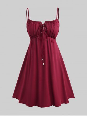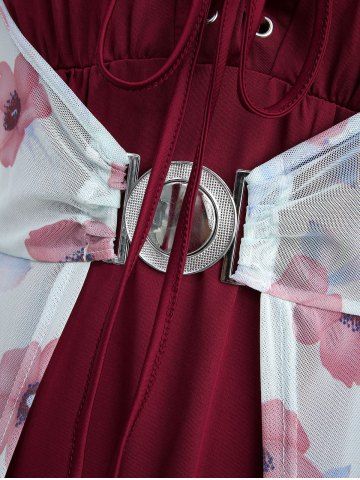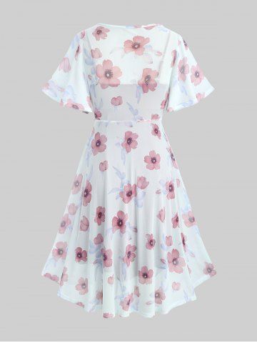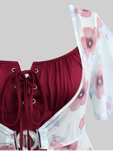 Plus Size Flutter Sleeves Floral Dress and Lace-up A Line Cami Dress Set - Color Rojo Oscuro - 2x | Us 18-20