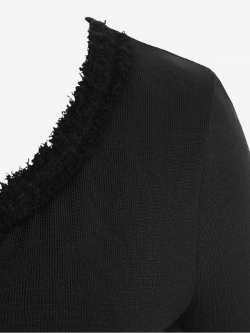 Vestidos Casuales > Plus Size Glitter Textured Ribbed Topstitching Lace Up Patchwork 2 in 1 A Line Dress