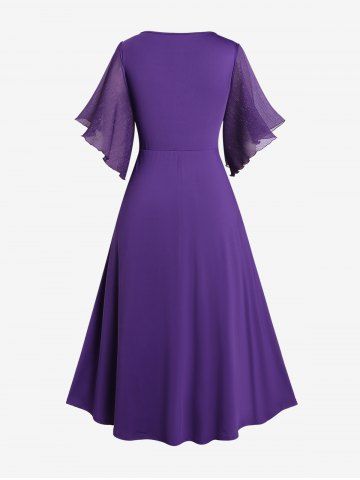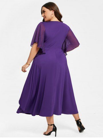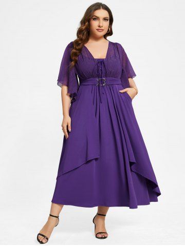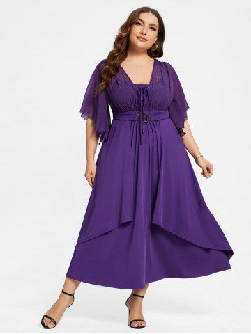 Plus Size Lace Up Buckle Grommet Layered Butterfly Sleeve Dress
