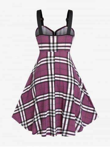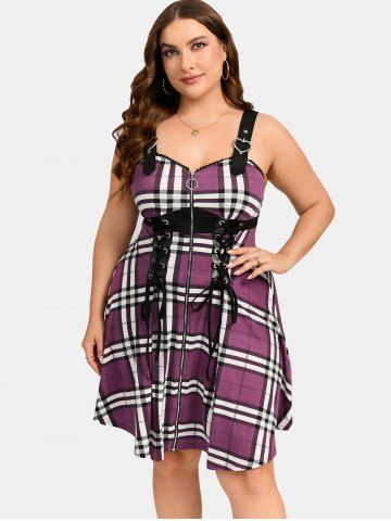 Plus Size Plaid Lace Up Zipper Heart Buckles Cami Dress - Concordia - L | Us 12