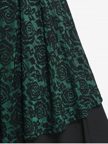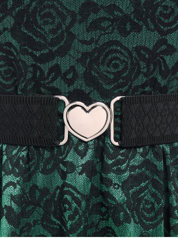 Plus Size Vintage Floral Lace Jacquard Buckled Straps Fit and Flare Belted Dress - Verde Oscuro - 1x | Us 14-16
