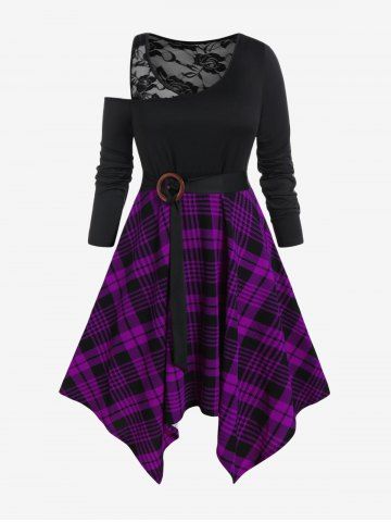 Vestido de Pañuelo con Encaje en Talla Extra - Púrpura - Púrpura