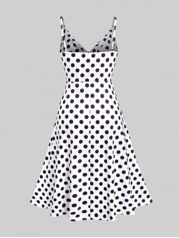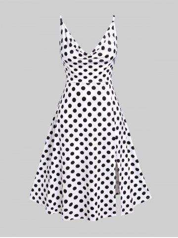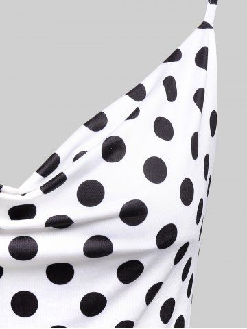 I*****e5Plus Size Polka Dot Print Cowl Neck Split Hem Midi DressColor: WHITE Size: 1X | US 14-16la taille est correcte, la matiere tres légère ,les bretelles réglable je recommande