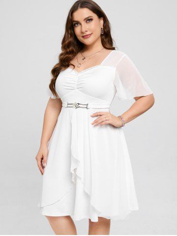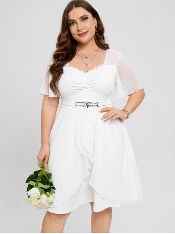 h*****r5Plus Size Ruched Flounce Lace Trim Flutter Sleeves A Line Wedding DressColor: WHITE Size: 3X | US 22-24Its A Beautiful Dress! But I got the wrong size! I need a size down. I always try to get things a little big when I buy online because they usually run small to me, but this one is too big for me.
