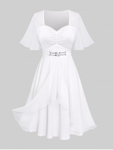 Vestido Talla Extra en Forma de a con Volantes con Encaje Insertado - Blanco - Blanco