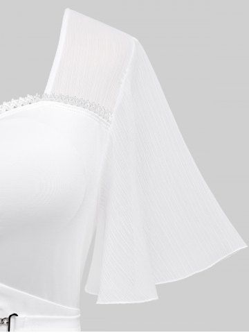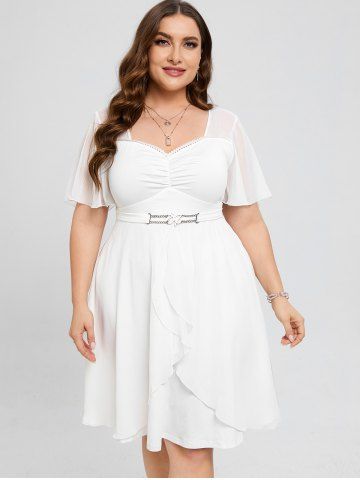 Plus Size Ruched Flounce Lace Trim Flutter Sleeves A Line Wedding Dress
