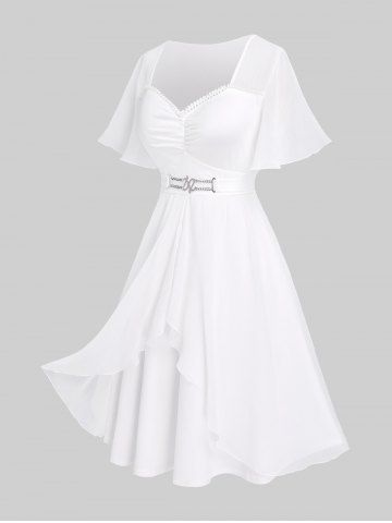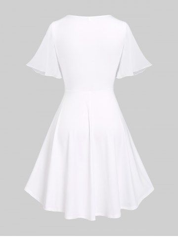 Vestido Talla Extra en Forma de a con Volantes con Encaje Insertado - Blanco - Blanco
