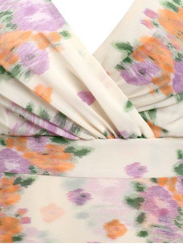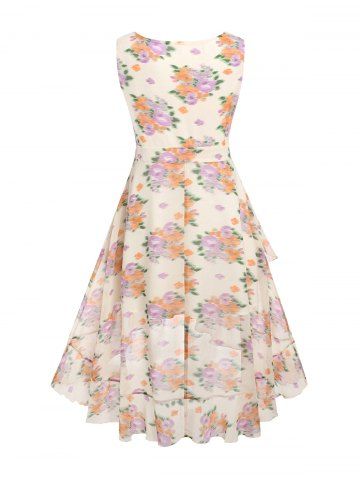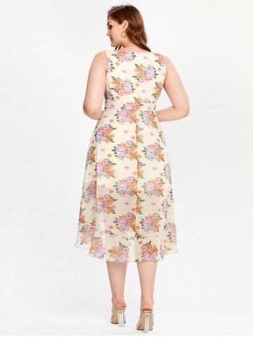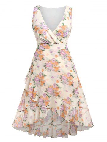 Midi Vestido de Escote Pico con Volantes con Estampado Floral de Talla Extra - Amarillo Claro - 1x | Us 14-16