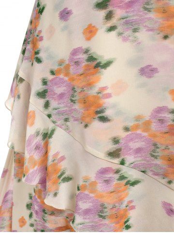 Vestidos Estampados > Midi Vestido de Escote Pico con Volantes con Estampado Floral de Talla Extra