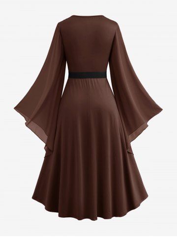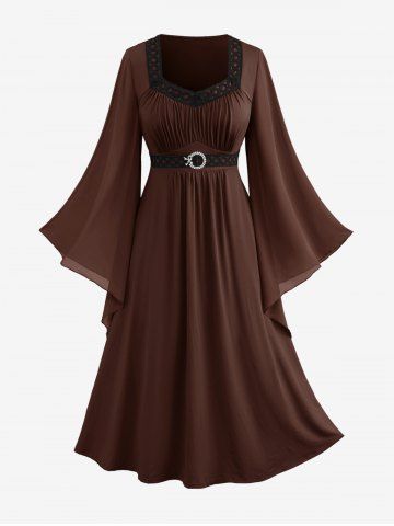 J*****n4Plus Size Lace Up Buckle Grommet Layered Butterfly Sleeve DressColor: CONCORD Size: 2X | US 18-20I rated the fit as true to size, but this is correct for the dress or bottom only (I am a 2X). The top (jacket) is just a tad small for my shoulders and bust, and since it is a separate piece, it rides up. I may try to stitch the two pieces together to make this work. The colour, material, and design otherwise is all quite nice and I am happy with dress portion. It also pairs nicely with a white sweater I ordered on here.