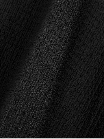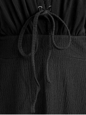 Plus Size Ruched Lace Up Mesh Bell Sleeves Textured Split Dress - Negro - Negro