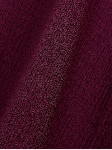 Plus Size Ruched Lace Up Mesh Bell Sleeves Textured Split Dress - Color Rojo Oscuro - M | Us 10