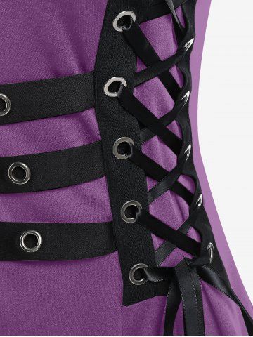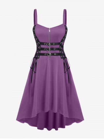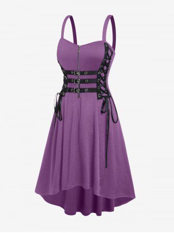 E*****a5Plus Size Grommets Lace Up Buckles Zipper High Low Midi DressColor: BLACK Size: L | US 12very cute. a little bit loose on the shoulder straps but I will have to tighten those up