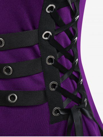 E*****a5Plus Size Grommets Lace Up Buckles Zipper High Low Midi DressColor: BLACK Size: L | US 12very cute. a little bit loose on the shoulder straps but I will have to tighten those up