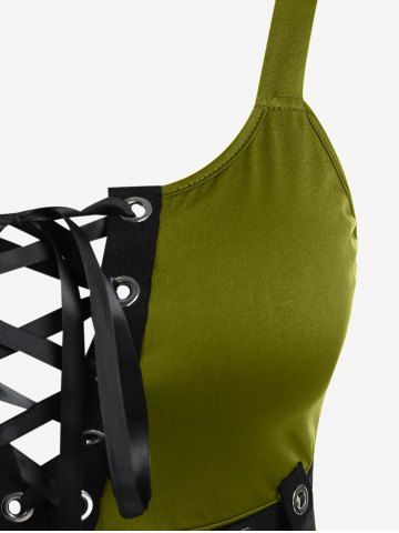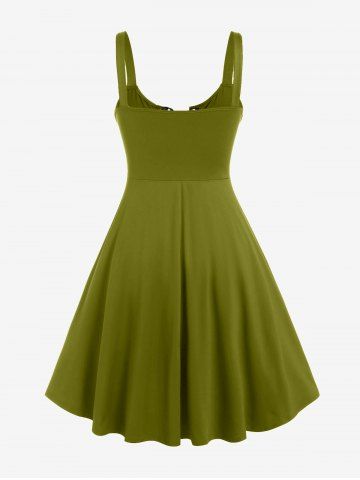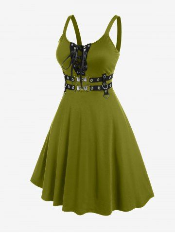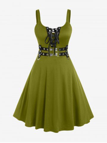 Plus Size Lace Up Grommets Fit and Flare Dress - Verde Claro - Verde Claro