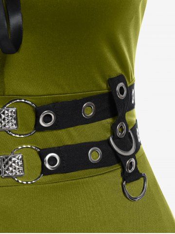 Vestidos Vintage > Plus Size Lace Up Grommets Fit and Flare Dress