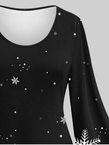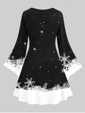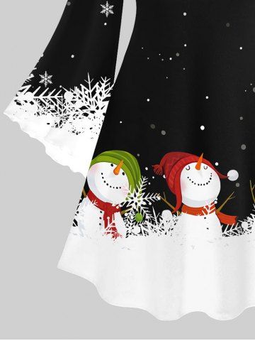Christmas Plus Size Snowflake Snowman Printed Flare Sleeves A Line Dress - Negro - Negro