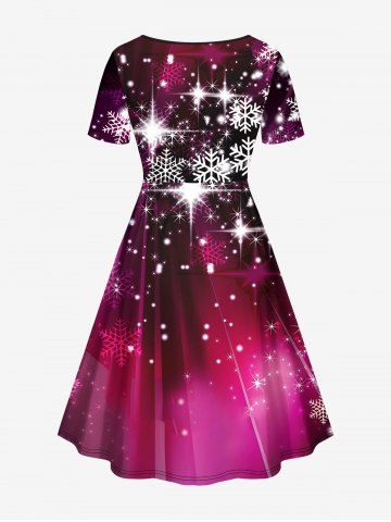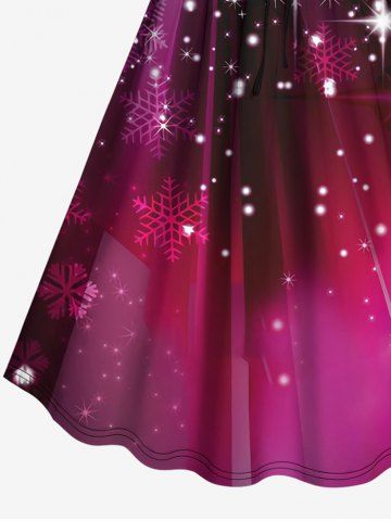 Plus Size Christmas Galaxy Snowflake Glitter Print Cinched Party New Years Eve Dress - Color Rojo Oscuro - 6x