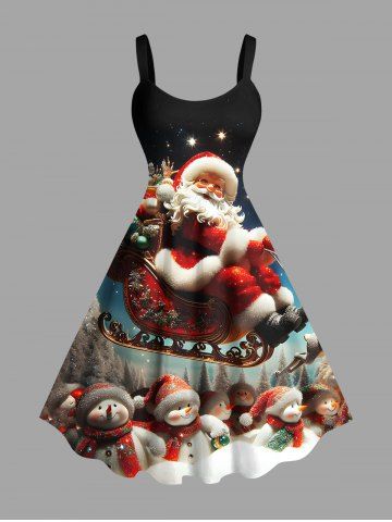 Plus Size Christmas Hat Snowman Santa Claus Ombre Galaxy Print A Line Dress - Negro - Negro