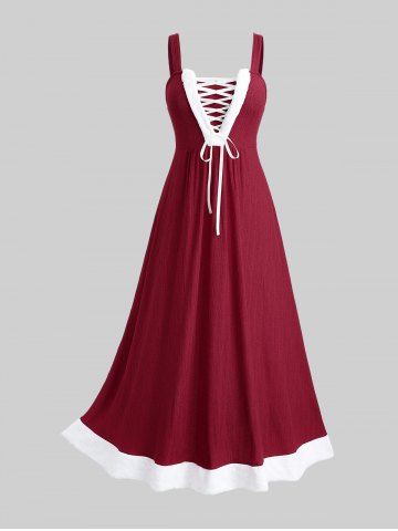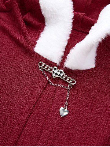 Vestidos > Plus Size Christmas Lace Up Fleece Trim Tank Dress and Heart Chain Buckle Hooded Cloak