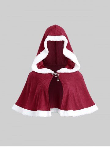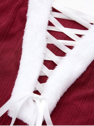 Plus Size Christmas Lace Up Fleece Trim Tank Dress and Heart Chain Buckle Hooded Cloak - Rojo - Rojo