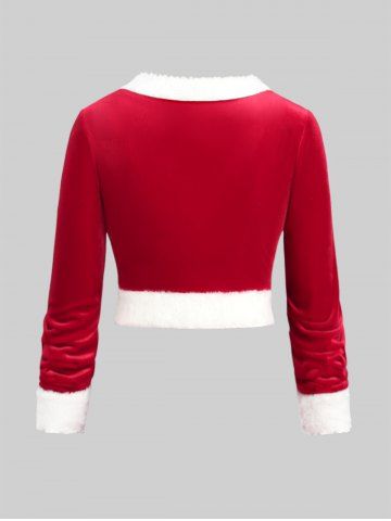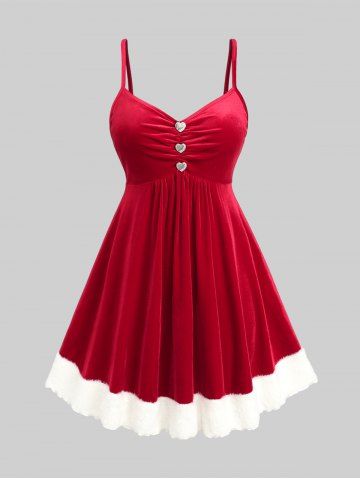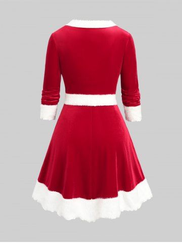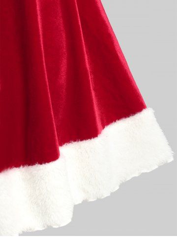 i*****b5Plus Size Christmas Velvet Contrast Trim Vintage Dress with Buckled BeltColor: RED Size: 4X | US 26-28confortable tissu de bonne qualité j'adore la robe sa allais très bien pour noel