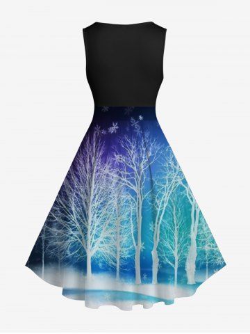 Plus Size Christmas Snowflake Tree Road River Print Ombre Vintage Swing A Line Dress - Multicolor-a - Xs