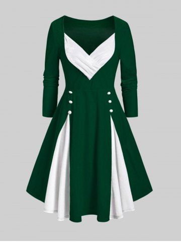 Vestido Campana Talla Extra Dos Tonos Terciopelo - Verde - Verde