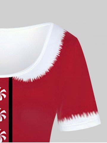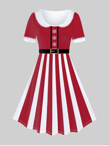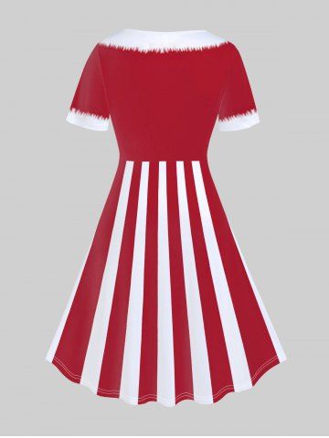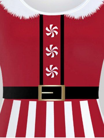 Vestido Línea Vertical a Rayas Navidad Tamaño Plus - Rojo - Rojo