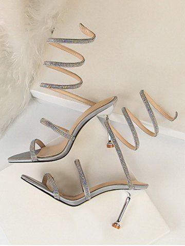 Sandalias de Tacón Fino y Alto con Artificiales Diamantes de Color - Plata - Plata