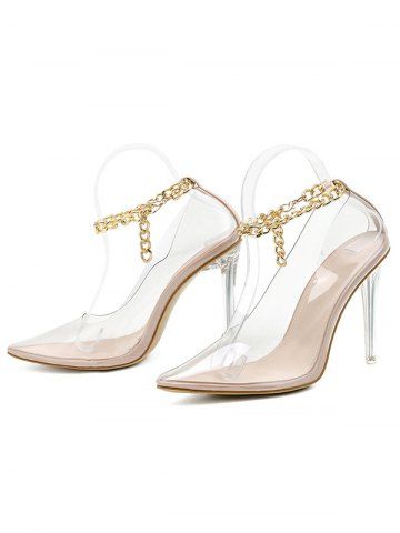 Zapatillas Cadena Tacón Stiletto Transparente - Blanco - Blanco